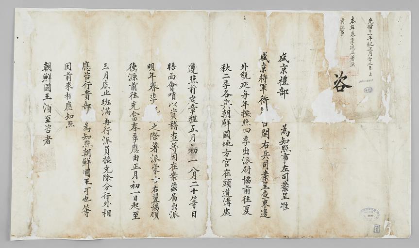 Keywords: 조선-청 외교문서(자문) 172.jpg 고종 21 1884 년 12월 16 에 청 예 에 조선 국왕에게 본년 年 춘계 春季 통 착파 統巡 派 전왕사 前 事 에 해 알리는 문 다 2016-07-19 http //www nl go kr/nl/search/SearchDetail nl category_code ct service KOLIS vdkvgwkey 1130223 colltype DAN_OLD place_code_info 172 place_name_info EB 94 94 EC A7 80 ED 84 B8 EC 97 B4 EB 9E 8C EC 8B A4 manage_code MA shape_code B refLoc null category srchFlag Y h_kwd E5 8F A4 E6 9C 9D51- EB 8B A428-241 lic_yn N mat_code RB 국립중앙도 조선국왕 청국예 other versions PD-Art Books from National Library of Korea Books from Korea 1885 in Relations of the Joseon Dynasty and the Qing Dynasty |