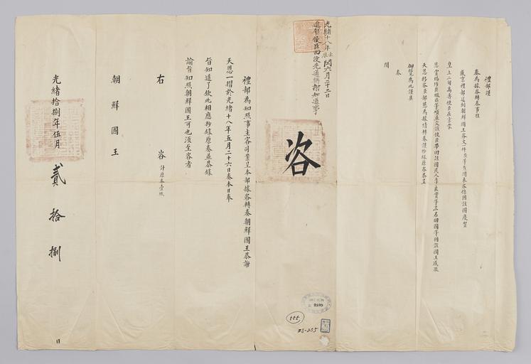 Keywords: 조선-청 외교문서(자문) 182.jpg 고종 29년 1892 5월 28 에 청국 예 에 조선국왕에게 보내 온 문 청 황 20세 맞 해 진하 사신들 상 받고 조선 양실 등 3명 사신 편에 돌려보내 것에 해 조선국왕 올린 감사 황 에게 아뢰었 알리는 내용 다 2016-07-19 http //www nl go kr/nl/search/SearchDetail nl category_code ct service KOLIS vdkvgwkey 1130279 colltype DAN_OLD place_code_info 172 place_name_info EB 94 94 EC A7 80 ED 84 B8 EC 97 B4 EB 9E 8C EC 8B A4 manage_code MA shape_code B refLoc null category srchFlag Y h_kwd E5 8F A4 E6 9C 9D51- EB 8B A428-255 lic_yn N mat_code RB 국립중앙도 조선국왕 청국예 other versions PD-Art Books from National Library of Korea Books from Korea 1892 in Relations of the Joseon Dynasty and the Qing Dynasty |