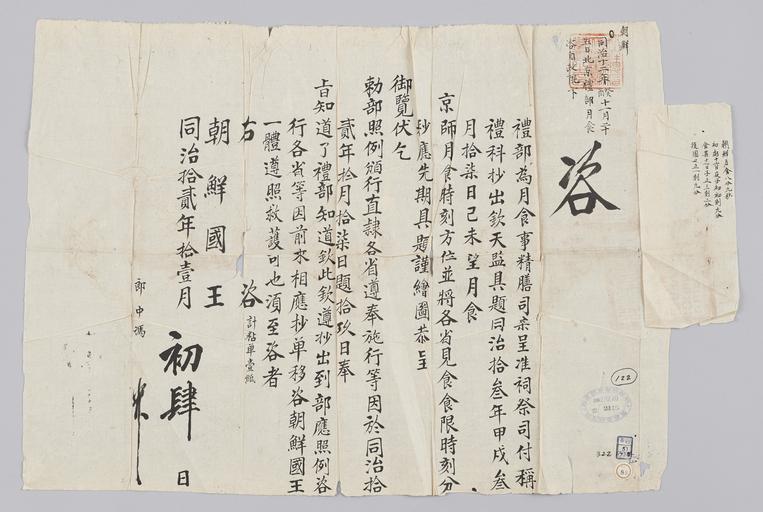 Keywords: 조선-청 외교문서(자문) 244.jpg 고종 10년 1873 11월 4 에 청국 예 에 조선국왕에게 보내 온 문 내년 1874 3월 17 에 있 월 각 알려주는 내용 다 월 각 적 쪽 붙어 있다 2016-07-19 http //www nl go kr/nl/search/SearchDetail nl category_code ct service KOLIS vdkvgwkey 1130320 colltype DAN_OLD place_code_info 172 place_name_info EB 94 94 EC A7 80 ED 84 B8 EC 97 B4 EB 9E 8C EC 8B A4 manage_code MA shape_code B refLoc null category srchFlag Y h_kwd E5 8F A4 E6 9C 9D51- EB 8B A428-322 lic_yn N mat_code RB 국립중앙도 조선국왕 청국예 other versions PD-Art Books from National Library of Korea Books from Korea 1873 in Relations of the Joseon Dynasty and the Qing Dynasty |