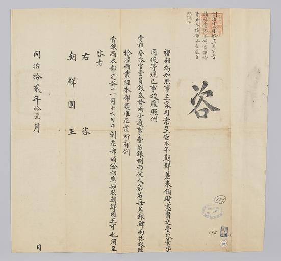 Keywords: 조선-청 외교문서(자문) 250.jpg 고종 10년 1873 11월에 청국 예 에 조선국왕에게 보내 온 문 조선에 온 헌 재자 용 등 행에게 모두 66냥 포상하 알리는 내용 다 2016-07-19 http //www nl go kr/nl/search/SearchDetail nl category_code ct service KOLIS vdkvgwkey 43336896 colltype DAN_OLD place_code_info 172 place_name_info EB 94 94 EC A7 80 ED 84 B8 EC 97 B4 EB 9E 8C EC 8B A4 manage_code MA shape_code B refLoc null category srchFlag Y h_kwd E5 8F A4 E6 9C 9D51- EB 8B A428-328 lic_yn N mat_code RB 국립중앙도 청국 예 급 other versions PD-Art Books from National Library of Korea Books from Korea 1873 in Relations of the Joseon Dynasty and the Qing Dynasty |