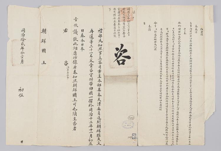 Keywords: 조선-청 외교문서(자문) 251.jpg 고종 10년 1873 11월 5 에 청국 예 에 조선국왕에게 보내 온 문 조선 민 문재환 文再還 등 21명 강소성 江蘇 에 터 진 天津 거쳐 북경 호송되어 왔는데 재자 돌아 는 편에 같 보낸다고 알리는 내용 다 2016-07-19 http //www nl go kr/nl/search/SearchDetail nl category_code ct service KOLIS vdkvgwkey 1130319 colltype DAN_OLD place_code_info 172 place_name_info EB 94 94 EC A7 80 ED 84 B8 EC 97 B4 EB 9E 8C EC 8B A4 manage_code MA shape_code B refLoc null category srchFlag Y h_kwd E5 8F A4 E6 9C 9D51- EB 8B A428-329 lic_yn N mat_code RB 국립중앙도 조선국왕 청국예 other versions PD-Art Books from National Library of Korea Books from Korea 1873 in Relations of the Joseon Dynasty and the Qing Dynasty |