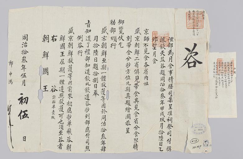 Keywords: 조선-청 외교문서(자문) 261.jpg 고종 11년 1874 5월 5 에 청국 예 에 조선국왕에게 보내 온 문 9월 16 에 있 월 각 알려 주는 내용 다 2016-07-19 http //www nl go kr/nl/search/SearchDetail nl category_code ct service KOLIS vdkvgwkey 1130010 colltype DAN_OLD place_code_info 172 place_name_info EB 94 94 EC A7 80 ED 84 B8 EC 97 B4 EB 9E 8C EC 8B A4 manage_code MA shape_code B refLoc null category srchFlag Y h_kwd E5 8F A4 E6 9C 9D51- EB 8B A428-339 lic_yn N mat_code RB 국립중앙도 조선국왕 청국예 other versions PD-Art Books from National Library of Korea Books from Korea 1874 in Relations of the Joseon Dynasty and the Qing Dynasty |