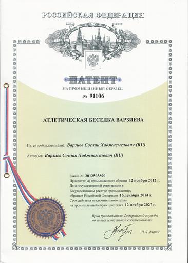 | Keywords: Патент на промышленный образец № 91106 (Россия).jpg ru Патент на п омышленный об азец 91106 Россия en Industrial design patent No 91106 Russia 2015-03-22 16 45 36 own Soslan Varziev other versions PD-RU-exempt Insignia cc-by-sa-4 0 Martial artists from Russia Patent Certificates from Russia |