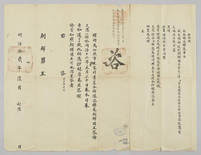 Keywords: 조선-청 외교문서(자문) 267.jpg 고종 10년 1873 6월 6 에 청국 예 에 조선국왕에게 보내 온 문 해 황 혼에 파견 경하사신 통해 조 비단 내려 것에 해 조선국왕 올린 사 자문 황 에게 아뢰었 알리는 내용 다 2016-07-19 http //www nl go kr/nl/search/SearchDetail nl category_code ct service KOLIS vdkvgwkey 1130343 colltype DAN_OLD place_code_info 172 place_name_info EB 94 94 EC A7 80 ED 84 B8 EC 97 B4 EB 9E 8C EC 8B A4 manage_code MA shape_code B refLoc null category srchFlag Y h_kwd E5 8F A4 E6 9C 9D51- EB 8B A428-345 lic_yn N mat_code RB 국립중앙도 조선국왕 청국예 other versions PD-Art Books from National Library of Korea Books from Korea 1873 in Relations of the Joseon Dynasty and the Qing Dynasty |