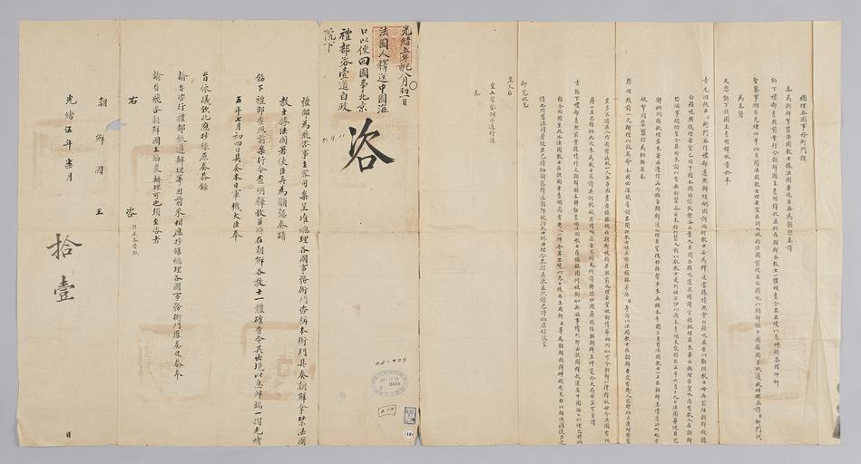 Keywords: 조선-청 외교문서(자문) 294.jpg 고종 16년 1879 7월 11 에 청국 예 에 조선국왕에게 보내 온 문 조선에 붙잡 법국 法 人 프랑스 교사 敎士 진승崔鎭 명 올돌 乭 V M Deguette 방하여 중국 해구 海口 보내 고 알리는 내용 다 고종실 16권 1879년 4월 11 기사에 하면 공주 방에 기찰에 해 프랑스 사람 올돌 체포되어 포도청에 갇 있는데 주 義州 에 넘겨 봉성 鳳城 압송하 고 되어있다 2016-07-19 http //www nl go kr/nl/search/SearchDetail nl category_code ct service KOLIS vdkvgwkey 1130094 colltype DAN_OLD place_code_info 172 place_name_info EB 94 94 EC A7 80 ED 84 B8 EC 97 B4 EB 9E 8C EC 8B A4 manage_code MA shape_code B refLoc null category srchFlag Y h_kwd E5 8F A4 E6 9C 9D51- EB 8B A428-377 lic_yn N mat_code RB 국립중앙도 조선국왕 청국예 other versions PD-Art Books from National Library of Korea Books from Korea 1879 in Relations of the Joseon Dynasty and the Qing Dynasty |