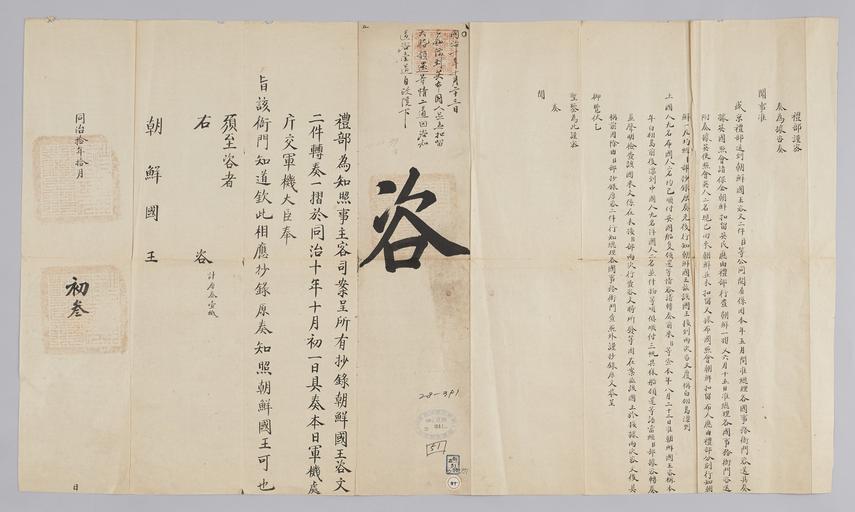 Keywords: 조선-청 외교문서(자문) 307.jpg 고종 8년 1871 10월 3 에 청국 예 에 조선국왕에게 보내 온 문 황해도 백령진에 류해 온 중국 9명과 영 英 ·포국 布 人 2명 큰 배 잘 돌려 보냈다는 조선국왕 자문 2건 받았다고 알리는 내용 다 2016-07-19 http //www nl go kr/nl/search/SearchDetail nl category_code ct service KOLIS vdkvgwkey 1130391 colltype DAN_OLD place_code_info 172 place_name_info EB 94 94 EC A7 80 ED 84 B8 EC 97 B4 EB 9E 8C EC 8B A4 manage_code MA shape_code B refLoc null category srchFlag Y h_kwd E5 8F A4 E6 9C 9D51- EB 8B A428-391 lic_yn N mat_code RB 국림중앙도 조선국왕 청국예 other versions PD-Art Books from National Library of Korea Books from Korea 1871 in Relations of the Joseon Dynasty and the Qing Dynasty |
