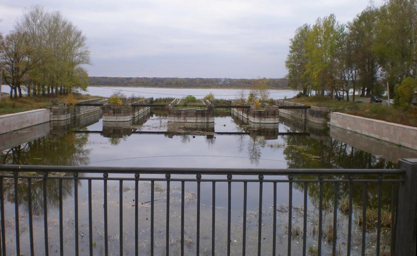 Keywords: МостВУстьеСтароладожскогоКанала-решетка.jpg ост в устье ста оладожского канала вид че ез ешётку на опо ы аз ушенного моста и на еву own 2007 Анд ей Shlisselburg Neva River