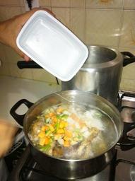 Keywords: Acrescentar o mirepoix e o sache d'épices no fundo claro de ave