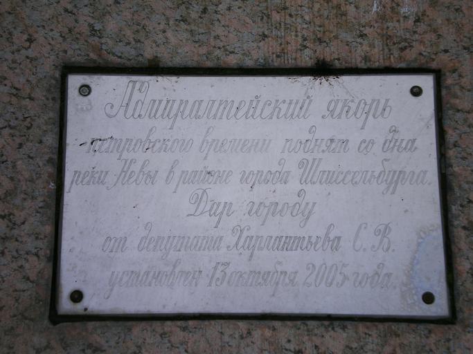 Keywords: ТабличкаЯкорь.JPG Табличка на установленном на постаменте яко е own 2007 Анд ей Shlisselburg Anchors in Russia