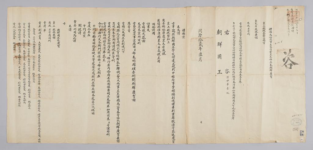 Keywords: 조선-청 외교문서(자문) 317.jpg 고종 10년 1873 6월에 청국 예 에 조선국왕에게 보내 온 문 황상 정과 양구 황 후 상 호 건 조선에 보낸 진하 겸 사 사 온 사신 정사 근필 根弼 사 경원 韓敬源 등에게 포상과 진연 베 것 황 에게 주문 奏聞 하 알리는 내용 다 2016-07-19 http //www nl go kr/nl/search/SearchDetail nl category_code ct service KOLIS vdkvgwkey 1130334 colltype DAN_OLD place_code_info 172 place_name_info EB 94 94 EC A7 80 ED 84 B8 EC 97 B4 EB 9E 8C EC 8B A4 manage_code MA shape_code B refLoc null category srchFlag Y h_kwd E5 8F A4 E6 9C 9D51- EB 8B A428-401 lic_yn N mat_code RB 국립중앙도 조선국왕 청국예 other versions PD-Art Books from National Library of Korea Books from Korea 1873 in Relations of the Joseon Dynasty and the Qing Dynasty |
