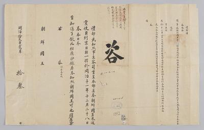 | Keywords: 조선-청 외교문서(자문) 322.jpg 고종 10년 1873 2월 13 에 청국 예 에 조선국왕에게 보내 온 문 조선에 보낸 동 겸 사 사 정사 수현 등 행 북경에 도착 기 알리는 내용 다 2016-07-19 http //www nl go kr/nl/search/SearchDetail nl category_code ct service KOLIS vdkvgwkey 1130354 colltype DAN_OLD place_code_info 172 place_name_info EB 94 94 EC A7 80 ED 84 B8 EC 97 B4 EB 9E 8C EC 8B A4 manage_code MA shape_code B refLoc null category srchFlag Y h_kwd E5 8F A4 E6 9C 9D51- EB 8B A428-406 lic_yn N mat_code RB 국립중앙도 조선국왕 청국예 other versions PD-Art Books from National Library of Korea Books from Korea 1873 in Relations of the Joseon Dynasty and the Qing Dynasty |