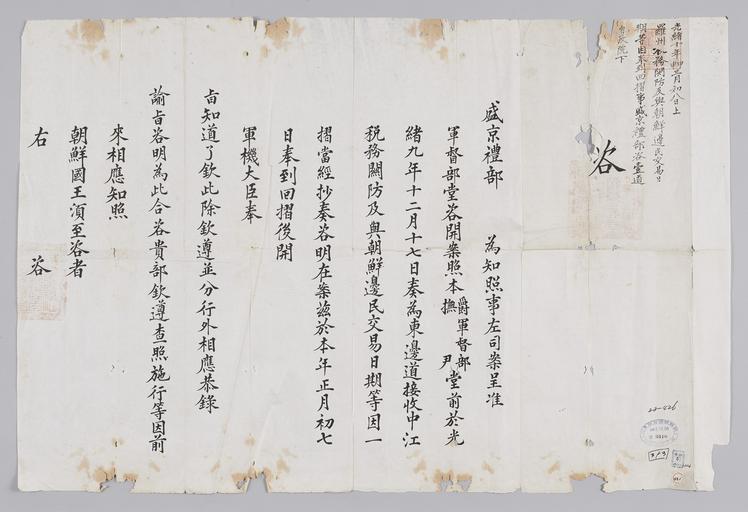 Keywords: 조선-청 외교문서(자문) 331.jpg 고종 21년 1884 에 청국 예 에 조선국왕에게 보내 온 문 나주 羅州 세무 방 稅務 防 과 조선 민 교역 자를 황 에게 아뢰었다고 알리는 내용 다 문 뒷 분 결 되어 정확 작성 기는 알 수 없다 2016-07-19 http //www nl go kr/nl/search/SearchDetail nl category_code ct service KOLIS vdkvgwkey 1130221 colltype DAN_OLD place_code_info 172 place_name_info EB 94 94 EC A7 80 ED 84 B8 EC 97 B4 EB 9E 8C EC 8B A4 manage_code MA shape_code B refLoc null category srchFlag Y h_kwd E5 8F A4 E6 9C 9D51- EB 8B A428-426 lic_yn N mat_code RB 국립중앙도 조선국왕 청국예 other versions PD-Art Books from National Library of Korea Books from Korea 1884 in Relations of the Joseon Dynasty and the Qing Dynasty |
