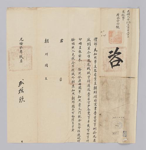Keywords: 조선-청 외교문서(자문) 342.jpg 고종 20년 1883 9월 29 에 청국 예 에 조선국왕에게 보내 온 문 조선에 파견 헌 재자 섭 尹奎燮 등 사신 행 져온 화물 貨物 에 해 면세함 알리는 내용 다 2016-07-20 http //www nl go kr/nl/search/SearchDetail nl category_code ct service KOLIS vdkvgwkey 1130173 colltype DAN_OLD place_code_info 172 place_name_info EB 94 94 EC A7 80 ED 84 B8 EC 97 B4 EB 9E 8C EC 8B A4 manage_code MA shape_code B refLoc null category srchFlag Y h_kwd E5 8F A4 E6 9C 9D51- EB 8B A428-474 lic_yn N mat_code RB 국립중앙도 조선국왕 청국예 other versions PD-Art Books from National Library of Korea Books from Korea 1883 in Relations of the Joseon Dynasty and the Qing Dynasty |