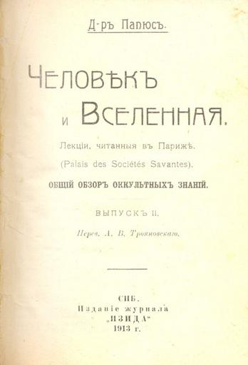 | Keywords: Папюс. Человек и Вселенная. (1913) — Титульный лист — 02.jpg Папюс Анкосс Же а -Анаклет-Винсент Титульный лист http //rarebooks ru/book_item/ book_id 6804 Image page PD-RusEmpire Isis magazine Magazines of Russia 1913 Books published in Saint Petersburg Title pages of books from Russia |