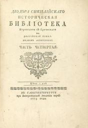 | Keywords: Диодор Сикилийский. Историческая библиотека. Часть 4. (1775). — Тит. лист.jpg Диодо а Сикилийского Исто ическая библиотека Пе еведена с г еческого на оссийский язык Иваном Алексеевым Титульный лист 4 части 1775 https //ru bidspirit com/portal/ /catalog/auction/55278f92e4b0c2c600f47db2/ Диодо Сицилийский PD-RusEmpire Books by Diodorus Siculus Books from Russia 1775 Books published in Saint Petersburg Title pages uploaded by Steven Pavlov from various sources | ||||