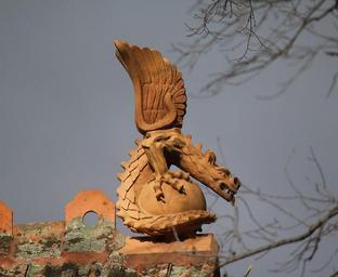 Keywords: melbourne houses buildings gargoyles city bricks trees sky moods orange grey moody gargoyle moody gargoyle