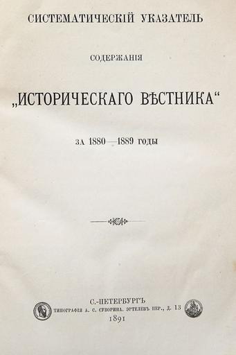 View Original:Городецкий Б.М. Систематический указатель содержания «Исторического вестника» за 25 лет, 1880-1904. (1908) — Тит. лист.jpg (666x1000)