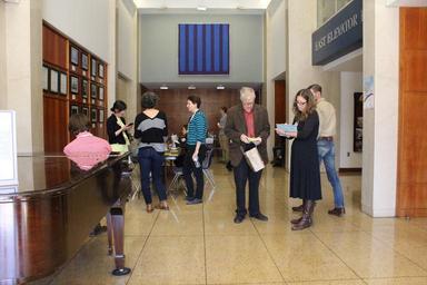 | Keywords: Katrina Lamberto, with clipboard, registers Marshall Wyatt and his films prior to film inspection and subsequent screening. Home Movie Day 2015 in Raleigh, NC. Saturday, October 17, 2015, at the State Archives of North Carolina. Photo by Georgia Ponton. Katrina Lamberto, with clipboard, registers Marshall Wyatt and his films prior to film inspection and subsequent screening. Home Movie Day 2015 in Raleigh, NC. Saturday, October 17, 2015, at the State Archives of North Carolina. Photo by Georgia Ponton. |