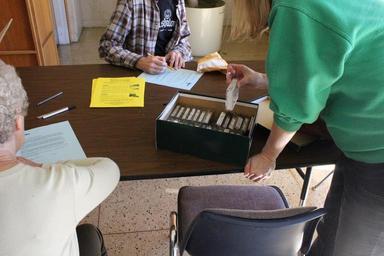 Keywords: Inspection stations. Films are inspected, leader added when necessary, and participants are encouraged to talk with the staff about their movies and ask questions. Home Movie Day 2015 in Raleigh, NC. Saturday, October 17, 2015, at the State Archives of North Carolina. Photo by Georgia Ponton. Inspection stations. Films are inspected, leader added when necessary, and participants are encouraged to talk with the staff about their movies and ask questions. Home Movie Day 2015 in Raleigh, NC. Saturday, October 17, 2015, at the State Archives of North Carolina. Photo by Georgia Ponton.