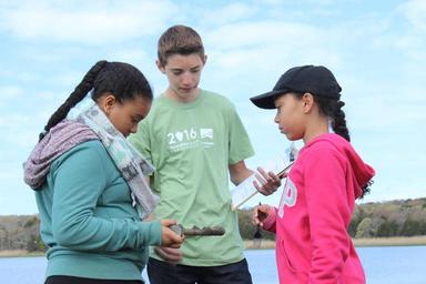 Keywords: outdoor people A student “teacher” helps 4th grade students interpret data during an activity at Cape Cod NS. A student “teacher” helps 4th grade students interpret data during an activity at Cape Cod NS.