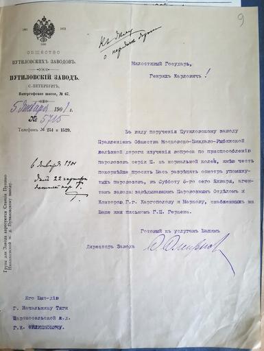 | Keywords: цгиа спб цгиаспб исторический царскосельская ж.д. царскосельскаяжд московско-виндаво-рыбинская железная дорога московсковиндаворыбинскаяжелезнаядорога railway россия russia путиловский завод путиловскийзавод письмо начальник тяги начальниктяги филлипович генрих карлович филлиповичгенрихкарлович санкт-петербург санктпетербург text document writing Письмо директора Путиловского завода Начальнику тяги Царскосельской железной дороге Генриху Карловичу Филлиповичу о переделки паровозов на нормальную колею. 5 Января 1901 г. Письмо директора Путиловского завода Начальнику тяги Царскосельской железной дороге Генриху Карловичу Филлиповичу о переделки паровозов на нормальную колею. 5 Января 1901 г. |