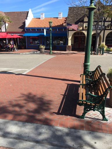 Keywords: sidewalk crosswalk brick midblock midblockcrossing pedestrian walkability bench streetfurniture solvang
