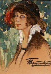 Keywords: Иван Силыч Горюшкин-Сорокопудов, 1873 -1956 г.г. Портрет Собольщиковой-Самариной, цв.бумага, пастель, гуашь) art-call Artistically