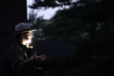 Keywords: black background Ranger Kim Swift tells spooky stories during a night hike at Indiana Dunes NL. Ranger Kim Swift tells spooky stories during a night hike at Indiana Dunes NL.
