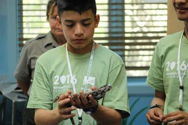Keywords: people Snakes were a huge hit with both the students and the student teachers at Indiana Dunes NL. Snakes were a huge hit with both the students and the student teachers at Indiana Dunes NL.