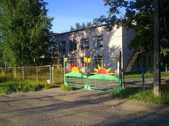 Keywords: Детский садик.jpg ru Вид на входные во ота детского сада own Uchkhoz1 2011-08-06 Cc-zero Buildings in Leningrad Oblast Kindergarten in Russia Novyy Uchkhoz