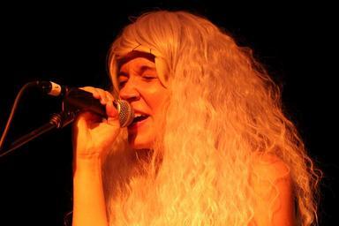 Keywords: pdx pop now 2015 summer outdoormusic outdoor concert stage sunlight tracks bridge drummer singer guitarist coco columbia jazz electronic rock weird spotlight black background people Coco Columbia Coco Columbia