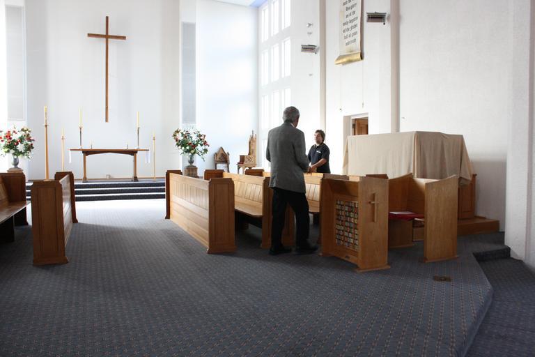 Keywords: Right hand side of Chancel, St Matthew's Anglican Church, Masterton, with Sanctuary, Cross and Altar at the back. stmatthewsanglicanchurchmasterton