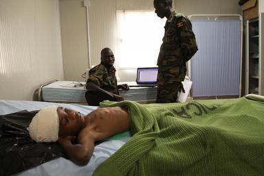 | Keywords: indoor A young boy lies in the AMISOM Level II hospital on July 8 after having been wounded during fighting in Kismayo, Somalia. AU UN IST PHOTO / ILYAS A. ABUKAR A young boy lies in the AMISOM Level II hospital on July 8 after having been wounded during fighting in Kismayo, Somalia. AU UN IST PHOTO / ILYAS A. ABUKAR |