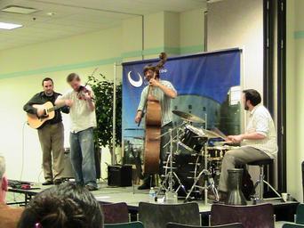 Keywords: kalamazoo library live concert liveconcert folk bluegrass jazz celtic indie State champion bluegrass fiddler Brad Phillips, national award-winning jazz percussionist Mike Shimmin, national champion soloist jazz bassist Andrew Kratzat, and title-defying-creative-mastermind-insert­-adjective-here guitarist Jesse Lee Mason share an active interest in jazz. Millish performed at Kalamazoo Public Library on May 13, 2009, as part of the library's Live Music @ KPL series. www.kpl.gov/music/ State champion bluegrass fiddler Brad Phillips, national award-winning jazz percussionist Mike Shimmin, national champion soloist jazz bassist Andrew Kratzat, and title-defying-creative-mastermind-insert­-adjective-here guitarist Jesse Lee Mason share an active interest in jazz. Millish performed at Kalamazoo Public Library on May 13, 2009, as part of the library's Live Music @ KPL series. www.kpl.gov/music/