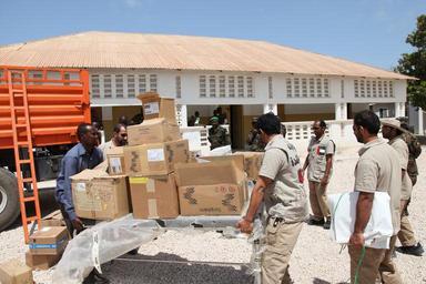 | Keywords: outdoor Medical equipment donated by the United Arab Emirates is delivered to AMISOM's Level II hospital in Mogadishu, Somalia. AU UN IST PHOTO / ILYAS A. ABUKAR Medical equipment donated by the United Arab Emirates is delivered to AMISOM's Level II hospital in Mogadishu, Somalia. AU UN IST PHOTO / ILYAS A. ABUKAR |