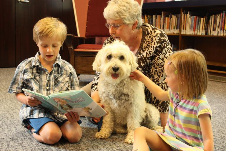 Keywords: Reading with Bailey at Kalamazoo Public Library. dogs public reading library international bailey kalamazoo therapy