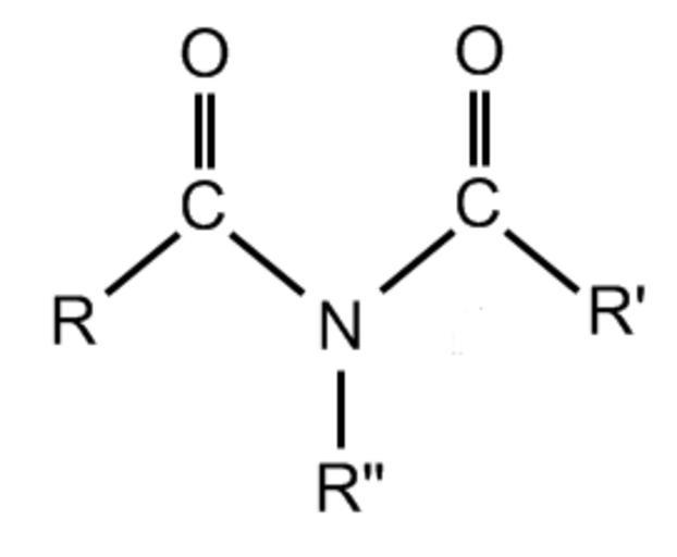 Keywords: Imide group.png pl Grupa imidowa zawierająca dwie grupy acylowe przyłączone do atomu azotu own Cutlaw 2009-11-08 thumb left SVG version Imides