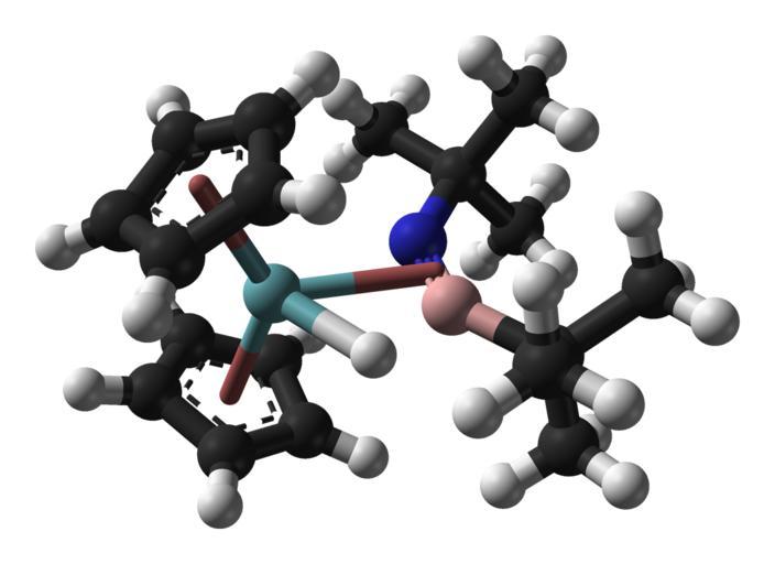 | Keywords: Iminoborane-NbCp2-complex-from-xtal-1988-3D-balls.png Ball-and-stick model of the complex of tert-butyl tert-butylimino borane tBu-BN-tBu with Cp<sub>2</sub>NbH from the crystal structure X-ray crystallographic data from http //dx doi org/10 1002/anie 198809581 Angew Chem Int Ed 1988 27 958 959 Own 2008-03-25 Ben Mills Benjah-bmm27 Images by Ben Mills Tert-butyl tert-butylimino borane Niobium complexes Cyclopentadienyl complexes | ||||