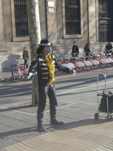 Keywords: Imitador michael jackson.jpg Imitador de Michael Jackson en las ramblas de Barcelona España Own 2007-12-26 Michelangelo-36 Public domain Street performers in La Rambla of Barcelona Michael Jackson impersonators Bicing Barcelona