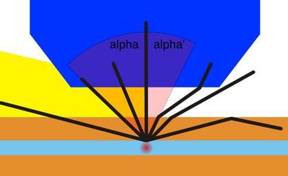 | Keywords: Immersionsvorteil-2.svg en Principle of immersion microscopy Path of rays with left half and without right half immersion medium yellow Rays black comming from the object red at a certain angle and going through the coverslip orange as the slide at the bottom can enter the objective dark blue only when immersion is used Otherwise the refraction at the coverslip “ air interface causes the ray to miss the objective and its information is lost de Prinzip der Mikroskopie mit Immersionsmedium Linke Seite Strahlengang mit rechts ohne Immersionsmedium gelb Lichtstrahlen schwarz die vom Objekt rot kommen und durch das Deckglas orange wie der Objektträger treten werden in einem bestimmten Winkelbereich nur dann vom Objektiv dunkelblau aufgefangen wenn durch Immersionsmedium eine Brechung am à bergang vom Deckglas zur Luft verhindert oder zumindest verringert wird Immersionsvorteil svg 2009-11-05 13 10 UTC Immersionsvorteil svg Dietzel65 vectorized by Leyo based on Image Immersionsvorteil jpg derivative work NoRoadrunner <span class signature-talk >talk</span> Numerical angle alpha added Berklas Immersionsvorteil svg Drawings of microscopes |