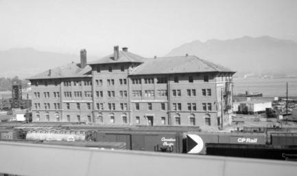 | Keywords: monochrome blackandwhite outdoor ship vehicle building architecture black and white Canadian Immigration Building, foot of Thurlow Street. September 10, 1972 photograph. Architect: E.E. Blackmore for the Department of Public Works. Built 1914-15. Demolished 1976 to provide trailer parking for the CPR trailer ferry pier. [City of Vancouver Archives; Walter Edwin Frost, photographer] Canadian Immigration Building, foot of Thurlow Street. September 10, 1972 photograph. Architect: E.E. Blackmore for the Department of Public Works. Built 1914-15. Demolished 1976 to provide trailer parking for the CPR trailer ferry pier. [City of Vancouver Archives; Walter Edwin Frost, photographer] |