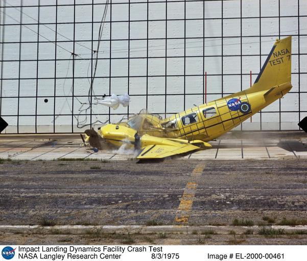 | Keywords: Impact Landing Dynamics Facility Crash Test DVIDS716385.jpg en By 1972 the Lunar Landing Research Facility was no longer in use for its original purpose The 400-foot high structure was swiftly modified to allow engineers to study the dynamics of aircraft crashes The Impact Dynamics Research Facility is used to conduct crash testing of full-scale aircraft under controlled conditions The aircraft are swung by cables from an A-frame structure that is approximately 400 ft long and 230 foot high The impact runway can be modified to simulate other grand crash environments such as packed dirt to meet a specific test requirement In 1972 NASA and the FAA embarked on a cooperative effort to develop technology for improved crashworthiness and passenger survivability in general aviation aircraft with little or no increase in weight and acceptable cost Since then NASA has crashed dozens of GA aircraft by using the lunar excursion module LEM facility originally built for the Apollo program This photograph shows Crash Test No 7 NASA Identifier L75-6092 1975-08-03 Glenn Research Center https //www dvidshub net/image/716385 NASA-image EL-2000-00461 LARC 716385 2012-10-10 18 05 WASHINGTON DC US PD-USGov Aircraft crash testing Images from DoD uploaded by Fæ Piper PA-31 Navajo Lunar Landing Research Facility |