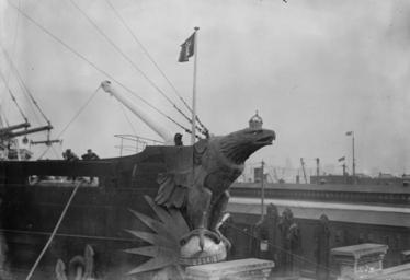 | Keywords: IMPERATOR's damaged Eagle (LOC).jpg w SS Imperator ' s damaged Eagle SS Imperator an ocean liner of the Hamburg America Line Wings of figurehead were destroyed by a storm in 1914 George Grantham Bain Collection Library of Congress Prints and Photographs Division Washington D C 20540 USA Call Number http //hdl loc gov/loc pnp/ggbain 15759 hdl loc gov/loc pnp/ggbain 15759 LC-B2- 3024-14<br/> Uploaded from Flickr Commons project http //www flickr com/photos/library_of_congress/5169604308/ IMPERATOR's damaged Eagle LOC ~ 1914 Publisher Bain News Service LOC-image ggbain 15759 PD-Bain The Library of Congress http //flickr com/photos/8623220 N02/5169604308 17 15 12 November 2010 UTC pd Figureheads Imperator ship 1913 |