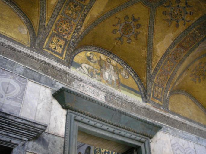 Keywords: Imperial Gate Hagia Sophia 2007 001.jpg The Imperial Gate inside the Hagia Sophia which was reserved only for the emperor The famous byzantine mosaic above the portal depicts Christ and Emperor Leo VI the Wise Own 2007-07 Gryffindor 100px 100px 100px thumb Hagia Sophia Istanbul - Imperial Gate mosaic |