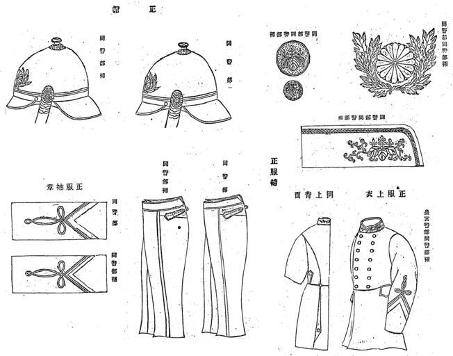 | Keywords: Imperial Guard officer uniform 1886 02.jpg ja 明治19年制式皇宮警察官正 明治19年 6 26日宮内 達第9号図式 en Imperial Guard officer's full dress uniform type 1886 明治19年6 26日 http //hourei ndl go jp/SearchSys/index jsp 日 国政 Custom license marker 2012 01 19 PD-Japan-organization Uploaded with UploadWizard Japanese Court officer uniform Police uniforms of Japan Imperial Guard Imperial Household Ministry of Japan | ||||