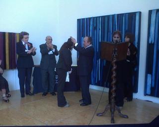 Keywords: Imposición medalla1.JPG es Imposición de la medalla al Mérito Literario José Saramago own El tecnomago 2009-11-17 Reneé Acosta