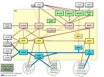 | Keywords: IMS Structure.png en Structure of the IP Multimedia Subsystem de Struktur des IP Multimedia Subsystem own Skyhead E 2013-12-05 wikitable - Abbreviation Meaning - ATCF Access Transfer Control Function - ATGW Access Transfer Gateway - BGCF Breakout Gateway Control Function - EATF Emergency Access Transfer Function - E-CSCF Emergency Call Session Control Function - GGSN Gateway GPRS Support Node - HSS Home Subscriber Server - I-BCF Interconnection Border Control Function - I-BGF Interconnection Border Gateway Function - I-CSCF Interrogating Call Session Control Function - IM-MGW IMS Multi Media Gateway - IMS IP Multimedia Subsystem - IM-SSF IP Multimedia Service Switching Function - IP-SM-GW IP Short Message Gateway - MGCF Media Gateway Control Function - MGW Media Gateway - MME Mobility Management Entity - MMTel Multimedia Telephony Service - MRFC Multimedia Resource Function Controller - MRFP Multimedia Resource Function Processor - MSS Mobile Switching Server - PCRF Policy and Charging Rules Function - P-CSCF Proxy Call Session Control Function - SAE-GW System Architecture Evolution Gateway - SBC Session Border Controller - SCC-AS Service Centralization and Continuity Application Server - SCP Service Control Point - S-CSCF Service Call Session Control Function - SGSN Serving GPRS Support Node - SLF Subscriber Locator Function - SMSC Short Message Service Centre - TrGW Trunking Gateway Telecommunications Cc-zero |