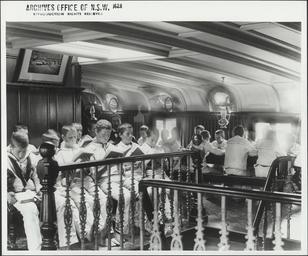 | Keywords: archives state records nsw staterecordsnsw newsouthwales blackandwhite sobraon children schoolchildren swimming boats reformatory industrial school industrialschool boys reading black and white Naval cadets in the library on the N.S.S. 'Sobraon' Dated: 11/08/1893 Digital ID: 4481_a026_000978 Rights: www.records.nsw.gov.au/about-us/rights-and-permissions See our Kieran Gallery which features other images of the Sobraon. Barney Kieran was such a talented swimmer he was declared "Champion Swimmer of the World". He was sent to the Sobraon industrial school as a 13 year old boy where he was encouraged to take up swimming. We'd love to hear from you if you use our photos/documents. Many other photos in our collection are available to view and browse on our website using Photo Investigator. Naval cadets in the library on the N.S.S. 'Sobraon' Dated: 11/08/1893 Digital ID: 4481_a026_000978 Rights: www.records.nsw.gov.au/about-us/rights-and-permissions See our Kieran Gallery which features other images of the Sobraon. Barney Kieran was such a talented swimmer he was declared "Champion Swimmer of the World". He was sent to the Sobraon industrial school as a 13 year old boy where he was encouraged to take up swimming. We'd love to hear from you if you use our photos/documents. Many other photos in our collection are available to view and browse on our website using Photo Investigator. |