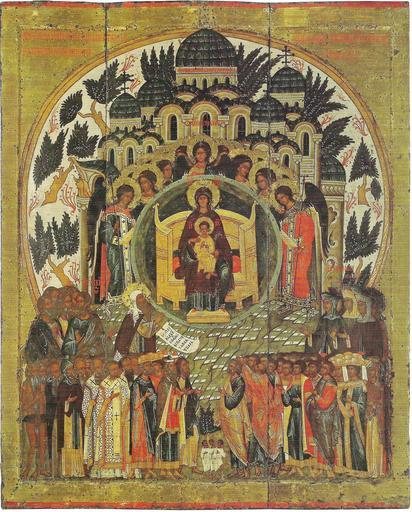 | Keywords: In Thee Rejoices St Elias church Vologda.jpg en In Thee Rejoices Icon from Elias church former Elias monastery in Vologda third quarter of 16 century now in VGIAKhMZ ru О Тебе адуется икона из Ильинской це кви бывш Ильинского монасты я в Вологде т етья четве ть XVI века сейчас в ВГИАХ З VGIAKhMZ еизв / Unknown third quarter of 16 century Icons of Vologda PD-old | ||||