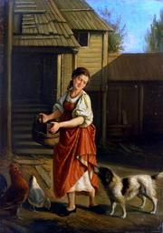 | Keywords: In the yard by Sergei Gribkov the second half of the XIX century.jpg Artwork Creator Sergei Gribkov decade 1890 oil on canvas cm 66 48 Рязанский госуда ственный областной художественный музей имени И П Пожалостина ru ru </sup> Рязанский госуда ственный областной художественный музей имени И П Пожалостина ru Ryazan en Рязань ru Russia accession number 574-ж object history http //www artmuseum62 ru/collection/8/ LangSwitch Summary information about this painting on the official website of the museum Сводная инфо мация об этой ка тине на официальном сайте музея http //www artmuseum62 ru/upload/iblock/bba/bba66b5a90a6d99338f978d9905ef5d0 jpg other versions PD-old-100 Sergei Gribkov Paintings in Ryazan Regional Art Museum 1890s paintings from Russia 1890s paintings in Russia 19th-century genre paintings 1893 paintings from Russia 1893 oil on canvas paintings 19th-century paintings from Russia 19th-century genre paintings from Russia Paintings of peasants Peasant women in art Paintings of Russian peasants Paintings of Russian women in national dress Portraits of Russian peasant women Women at work in art |